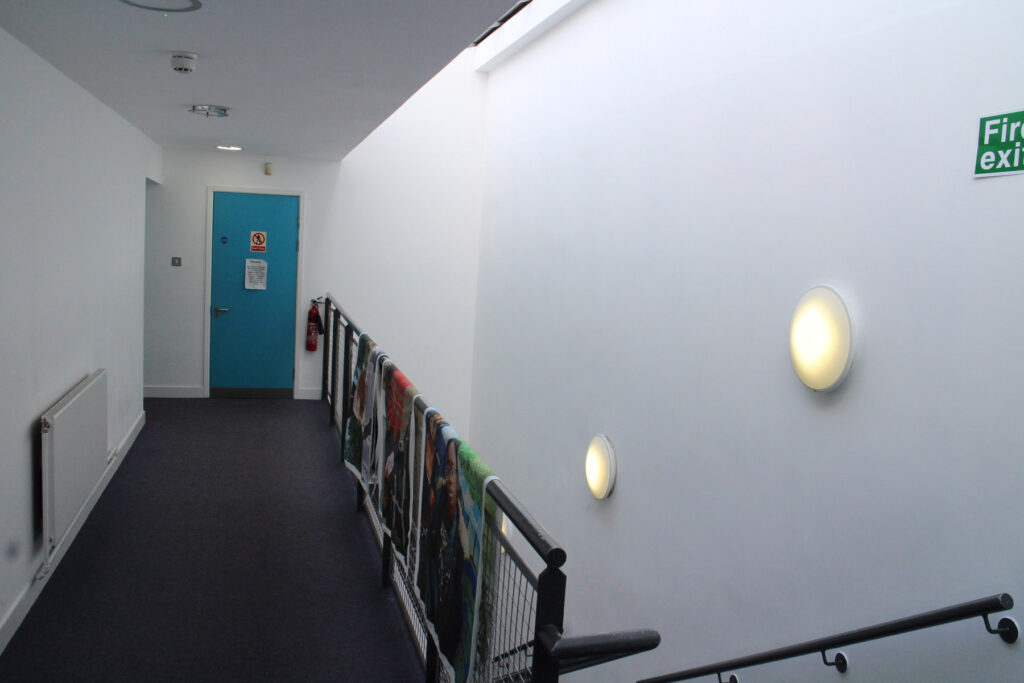 above and below: Bare institutional corridors, communal spaces and landings become a gallery reflecting identities, histories, creativity and imagination, transforming the venue into a cultural experience enriching people’s daily lives